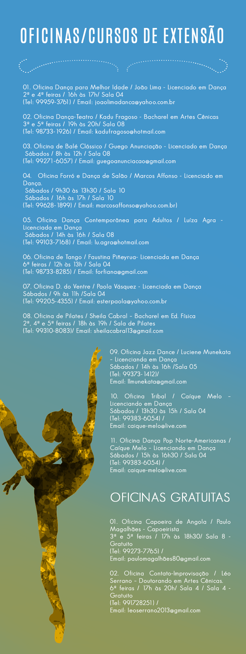 Hoje, basta fazer um pré-projeto para participar da seleção/edital, o que é menos trabalhoso. Quem já fazia parte do quadro dos cursos de extensão, não precisou fazer uma nova seleção. Segundo Guego Anunciação, que promove uma oficina de Balé Clássico, a mudança na admissão de projetos de extensão deu mais autonomia aos professores, no que diz respeito à definição de valores a serem cobrados e número de vagas. Essa autonomia também faz com que os professores não encontrem dificuldades para levar os cursos e oficinas adiante.
