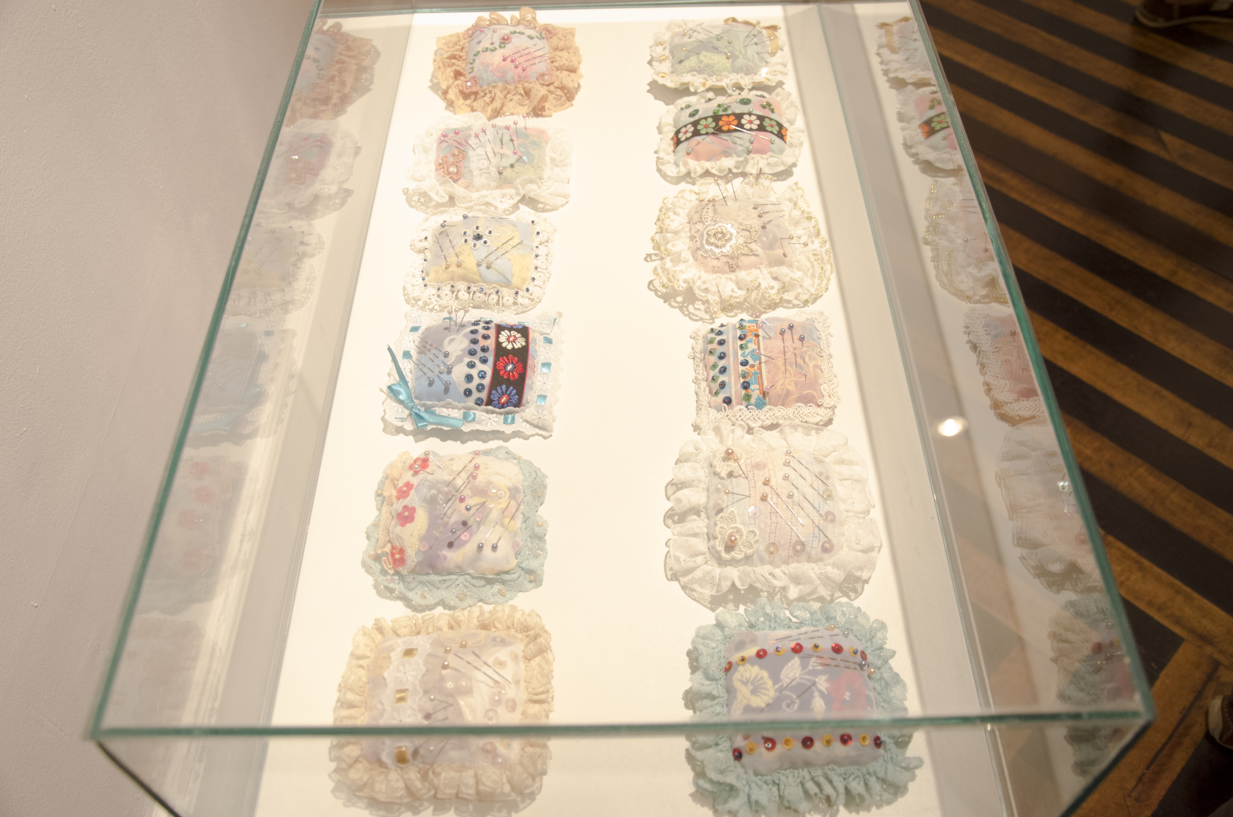 A artista Tanile Maria, cujo objeto de pesquisa é memória, intimidade e identidade, utilizou objetos herdados de sua avó. Cartas escritas na década de 30, agulhas, linhas,tecidos, bordados, e outros objetos, também estão compondo a instalação. A ente, falecida há dois anos faria 96 anos este ano e a exposição foi uma forma de homenageá-la.
