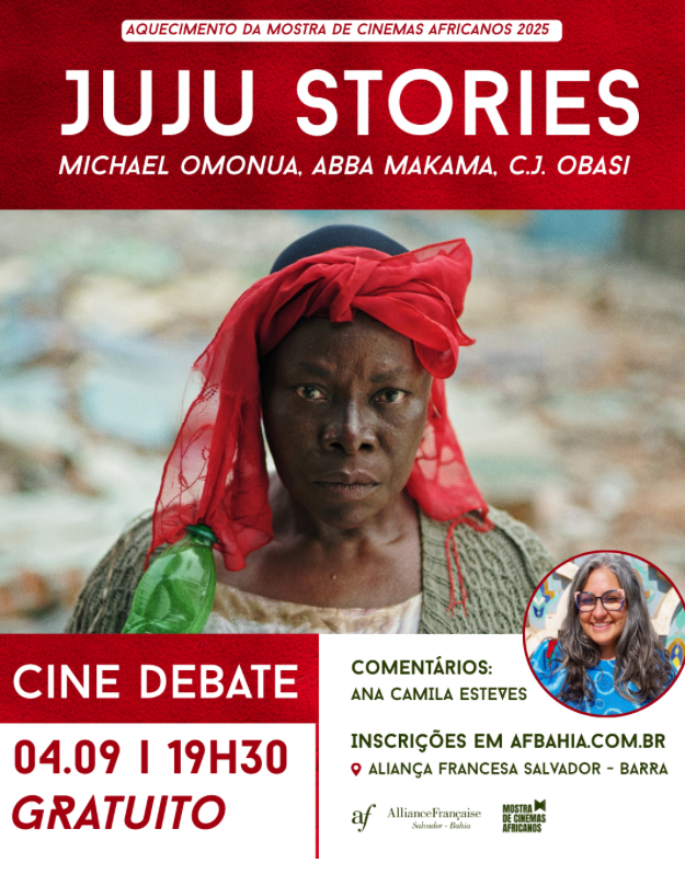 A Mostra de Cinemas Africanos dá início às atividades de aquecimento em Salvador com a exibição gratuita do filme Juju Stories (Nigéria, 2021), seguida de debate com a curadora Ana Camila Esteves. O encontro acontece no dia 4 de setembro (quinta-feira), às 19h30, na Aliança Francesa Salvador – Unidade Barra, com classificação indicativa de 14 anos.