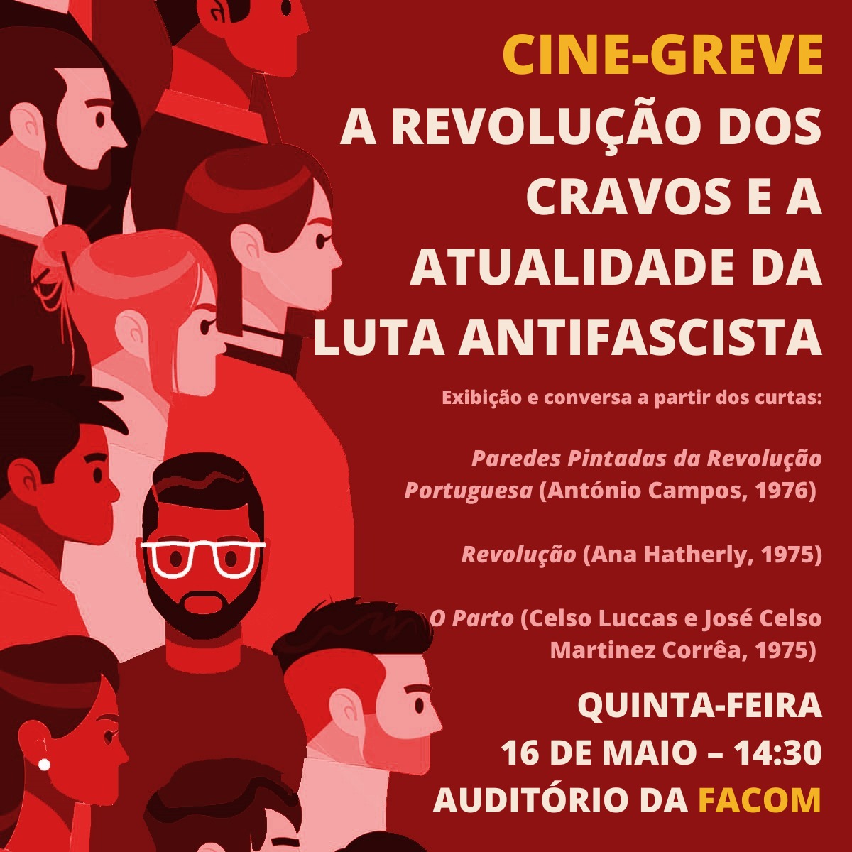 Acontece nesta quinta-feira (16) a partir das 14h30, no Auditório da Facom, uma sessão de cinema composta por filmes que retratam a Revolução dos Cravos. O evento propõe uma reflexão sobre o combate ao facismo, partindo da coincidência entre as datas 25/04/1974, marco da Revolução dos Cravos, que derrubou o regime fascista em Portugal e em suas então colônias africanas, e do 25/04/2024, quando se deflagrou a greve de docentes que está em andamento.
