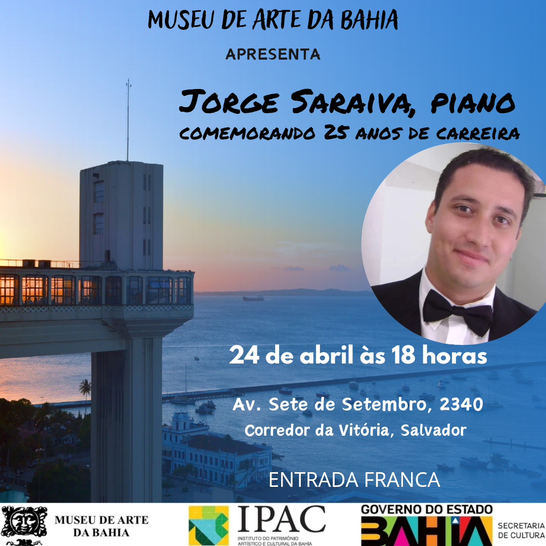 Com sua habilidade, Jorge Saraiva continua enriquecendo o cenário musical, e para comemorar seus 25 anos de carreira, o pianista percorre o Brasil e a Europa, com um repertório que marca sua trajetória. Em Salvador, o evento vai acontecer no dia 24 de abril, às 18h, no Museu de Arte da Bahia. E para contar mais sobre sua história e o que o público pode esperar do evento, a Agenda Arte e Cultura entrevistou o artista, confira.