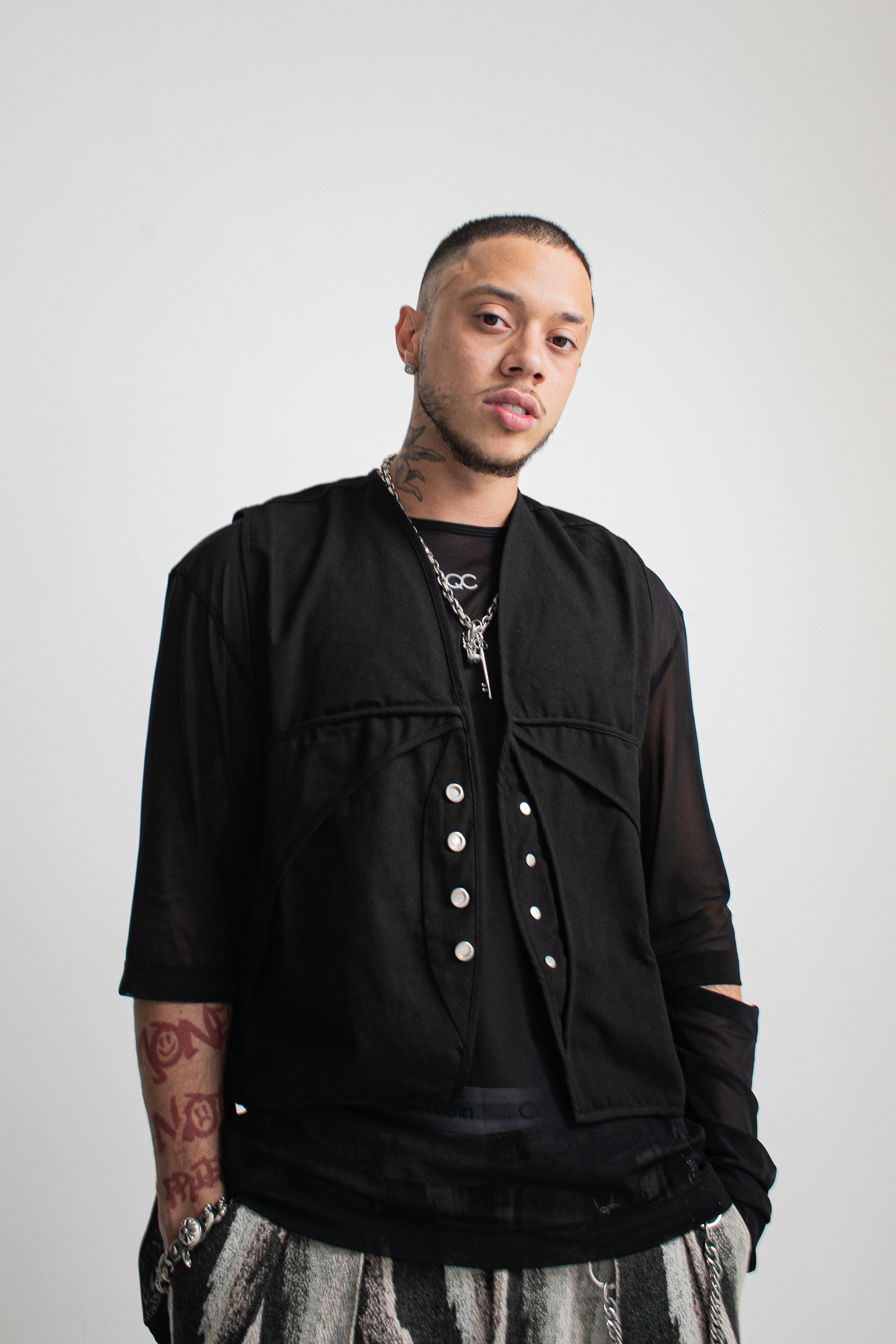 Em seus shows, o artista mistura energia, coreografias e sonoridades que transitam entre o trap, o afrobeat e influências do drill, sempre com a marca de sua irreverência criativa.