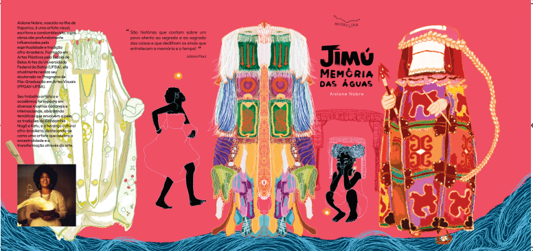 A publicação, que mescla memórias e ficção, é inspirada na vida de Edith Nobre, tia da autora, e retrata a trajetória da personagem Jimú, uma menina que vivencia os mistérios da religiosidade afro-brasileira. Aislane Nobre, artista visual e sobrinha de Edith, traz nas narrativas de “Jimú” a essência de suas experiências familiares e culturais. “As histórias de Jimú fazem parte de quem eu sou. Cresci ouvindo e vivenciando essas narrativas”, afirma a autora, destacando a influência das memórias familiares na construção da obra.