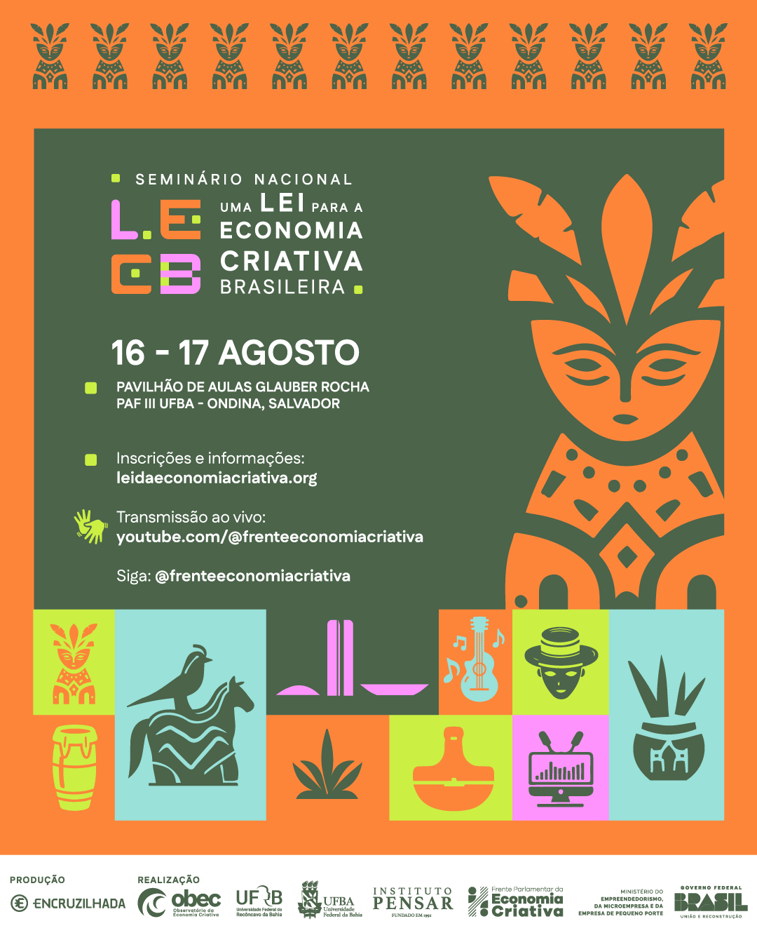 Iniciativa da FECriativa, o Seminário Nacional Uma Lei para a Economia Criativa Brasileira é realizado pelo Ministério do Empreendedorismo, da Microempresa e da Empresa de Pequeno Porte (MEMP), Instituto Pensar, Observatório da Economia Criativa (OBEC), Universidade Federal do Recôncavo da Bahia (UFRB) e Universidade Federal da Bahia (UFBA). Também são parceiros do evento o Ministério da Cultura (MinC) e o Ministério do Desenvolvimento, Indústria, Comércio e Serviços (MDIC).