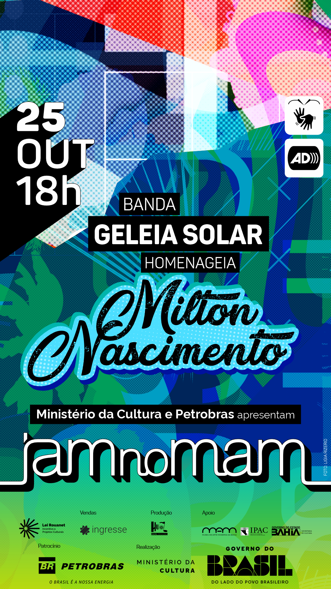 Encerrando o mês de outubro com uma homenagem especial, a banda Geléia Solar conduz a JAM no MAM em um mergulho na música de Milton Nascimento, um dos maiores nomes da MPB. O repertório vai revisitar clássicos como “Viola Violar” e “Cravo e Canela”, além de faixas que dialogam com o universo criativo de seus parceiros de geração, como Toninho Horta e Márcio Borges.