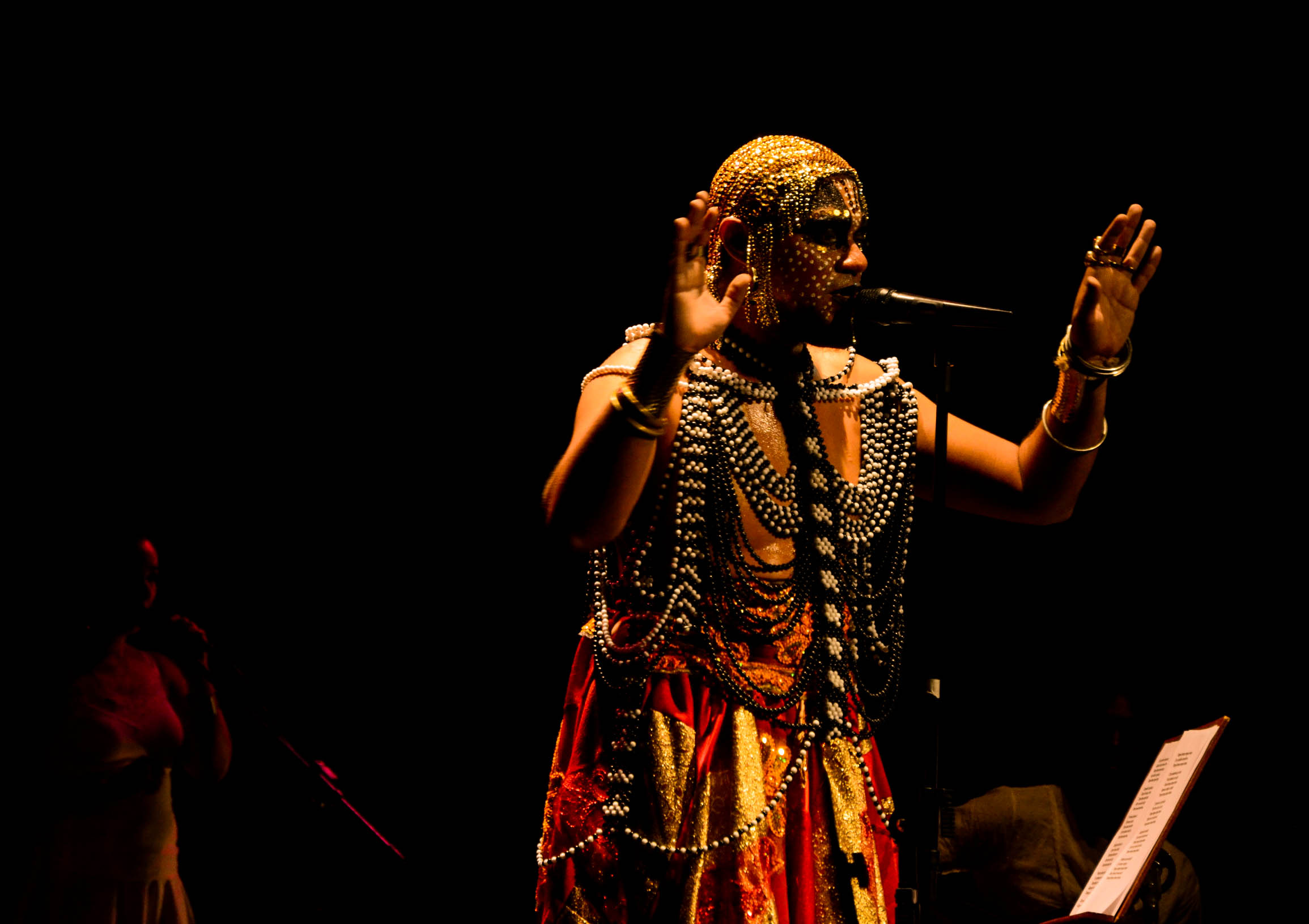 Espetáculo cênico-musical em cartaz na Sala do Coro do TCA propõe passeio pela tradição e modernidade musical africana, latino-americana e brasileira misturada aos orins – cânticos sagrados do Candomblé.