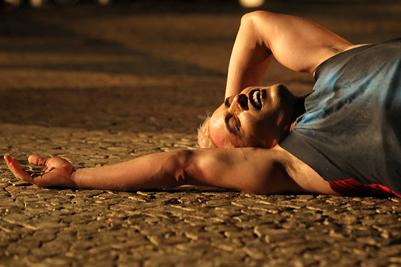 A cena acontece em espaços públicos urbanos, incorporando assim também pensamentos a respeito de cidade, ocupação, patrimônio histórico-cultural e memória.