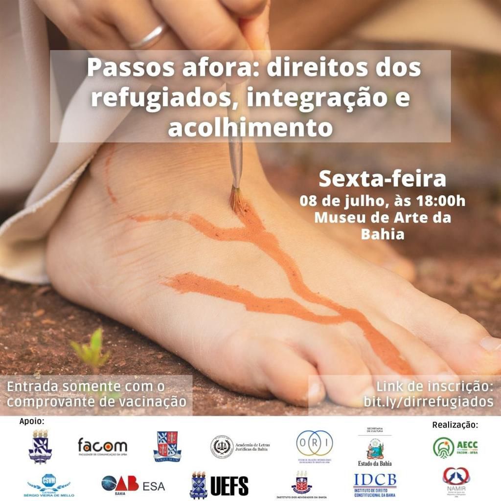 Nesta sexta-feira, às 18h, acontece no Museu de Arte da Bahia (MAB) o evento “Passos afora: direitos dos refugiados, integração e acolhimento”. A iniciativa é uma parceria interdepartamental e interinstitucional da Agência Experimental de Comunicação e Cultura (Aecc) e do Núcleo de Apoio aos Migrantes e Refugiados (Namir/UFBA) com a Faculdade de Direito e a Faculdade de Comunicação da UFBA.