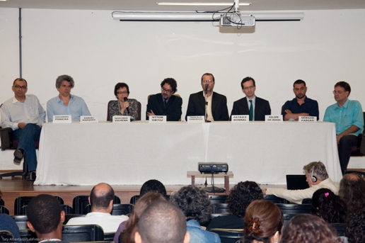 Deolinda Vilhena iniciou falando sobre a sua aproximação com o mercado e o desejo de trazer para a universidade a discussão sobre as cadeias produtivas do teatro. “Logo após tomar posse como professora da Ufba cadastrei o projeto do colóquio na Coordenação de Aperfeiçoamento de Pessoal de Nível Superior (Capes) e de imediato procurei os diretores do FIAC, que acolheram muito bem a ideia. Da mesma maneira, busquei integrar três unidades da universidade – a Escola de Teatro, a Facom e o IHAC – e procurei apoio na Secretaria de Cultura do Estado da Bahia (Secult/Ba) e na Embaixada da França”. Deolinda mencionou os envolvidos no projeto e destacou a articulação entre as instituições.