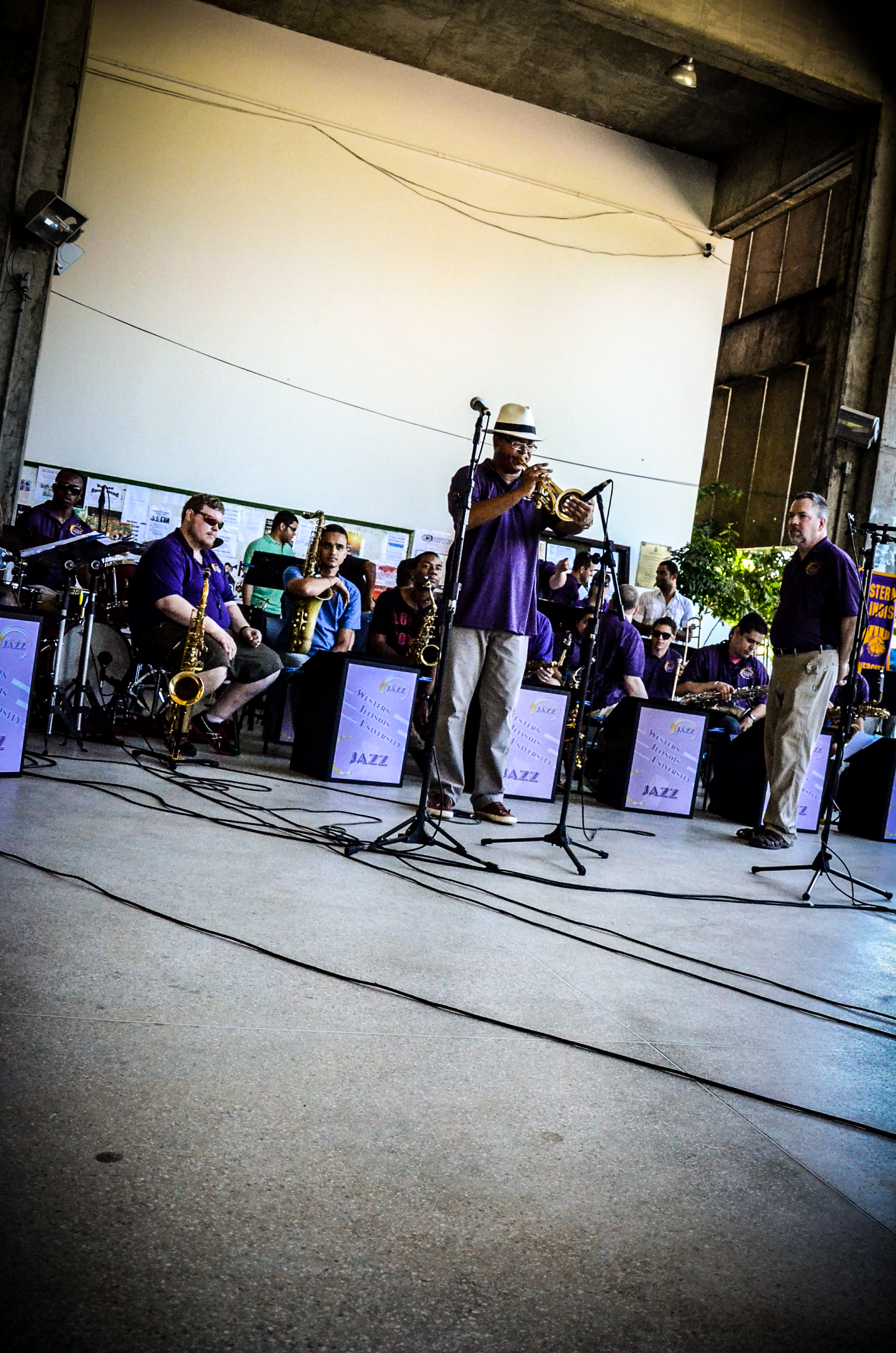 Ainda que o evento estivesse previamente agendado, conforme explicou o diretor da Escola de Música da UFBA, Heinz Schwebel, a impressão passada foi de total surpresa por parte de quem presenciava o concerto. Dezessete músicos com trompetes, saxofones e partituras, vestidos com o roxo característico da Western Illinois University, impressionaram a plateia, que interagiu com a banda e, estimulada por um dos organizadores, Doug Adair, pedia em inglês para que os músicos continuassem tocando.