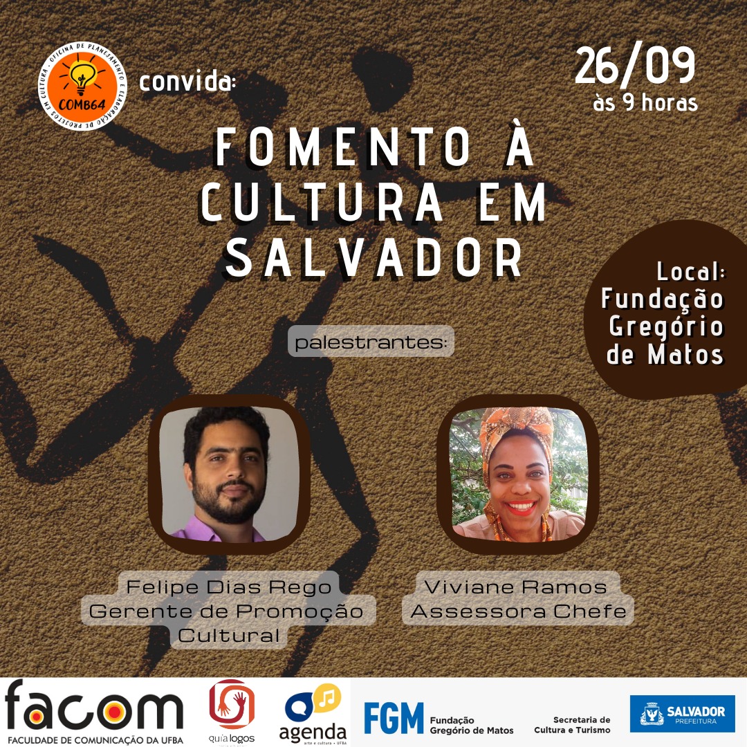 Na primeira edição dessa atividade, os estudantes poderão participar de uma visita à Fundação Gregório de Mattos (FGM), onde será apresentada a palestra sobre o tema: Fomento à Cultura em Salvador. A intenção é que os discentes, futuros profissionais da área, possam se familiarizar com os editais e outros programas de incentivo à cultura no município.