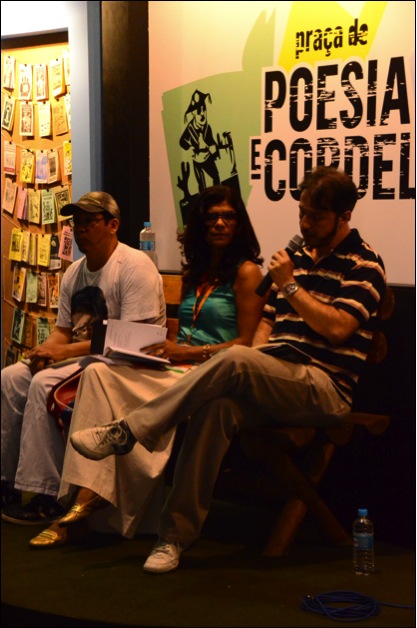 Cordel e circo – a espetacularização do livro Compondo a Praça de Poesia e Cordel, espaço destinado à valorização do folclore brasileiro, alguns stands divulgam a poesia de cordel. Teo Guedes, vendedor de livros de cordel que se define como folheteiro e não cordelista (escritor), ressaltou a importância da inclusão de literatura popular no eixo dos grandes eventos.