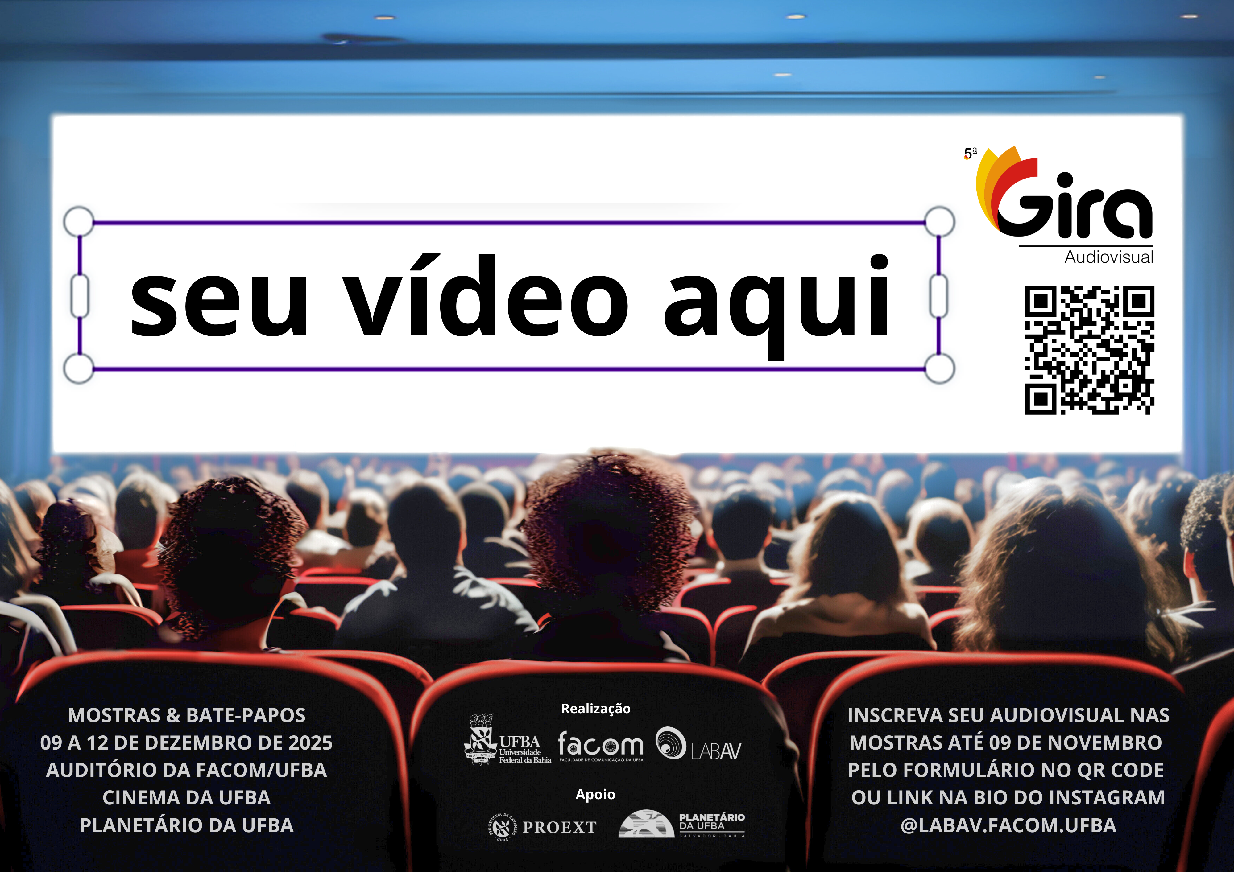 Se você produziu uma obra audiovisual na graduação ou pós-graduação da UFBA, essa é a sua chance! Estamos selecionando trabalhos de todos os gêneros, formatos e minutagens, como: