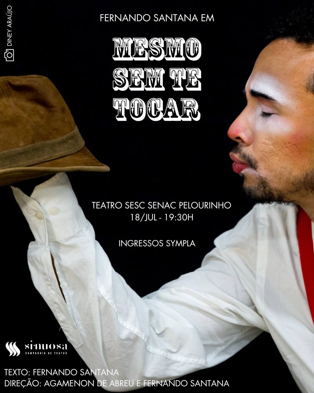 No dia 18 de julho, às 19h30, o Teatro SESC SENAC Pelourinho recebe o espetáculo Mesmo Sem Te Tocar, da Sinuosa Companhia de Teatro. A peça acompanha Léo, um homem que atravessa o tempo para viver um último encontro com o grande amor da sua vida.