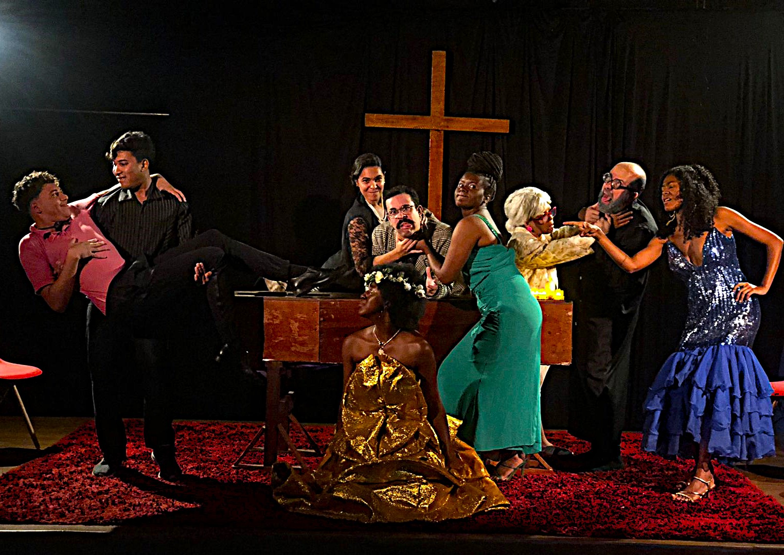 Dirigida pelo preparador de elenco, dramaturgo e diretor artístico Fábio Tavares em parceria com o ator Thales Moreira, a peça conta com o elenco composto pelos atores Augusto Barbosa (Padre), Natália Britto (Eustáquia Marlucia), Vanessa Oliveira (D. Misericórdia Pupila e Dra Ava Gina), Arthur Celis (Maxuel Cleberson), Juliana Costa (Latrina Juliana), Kilder Passos (Febrônio Sidney), Yasmin Fernandes (Samanta Valquíria), Débora Estrella (Cidinéia Zuleika) e Gabo Leão (Lupércio e Pandolfo Peróca Docéu).