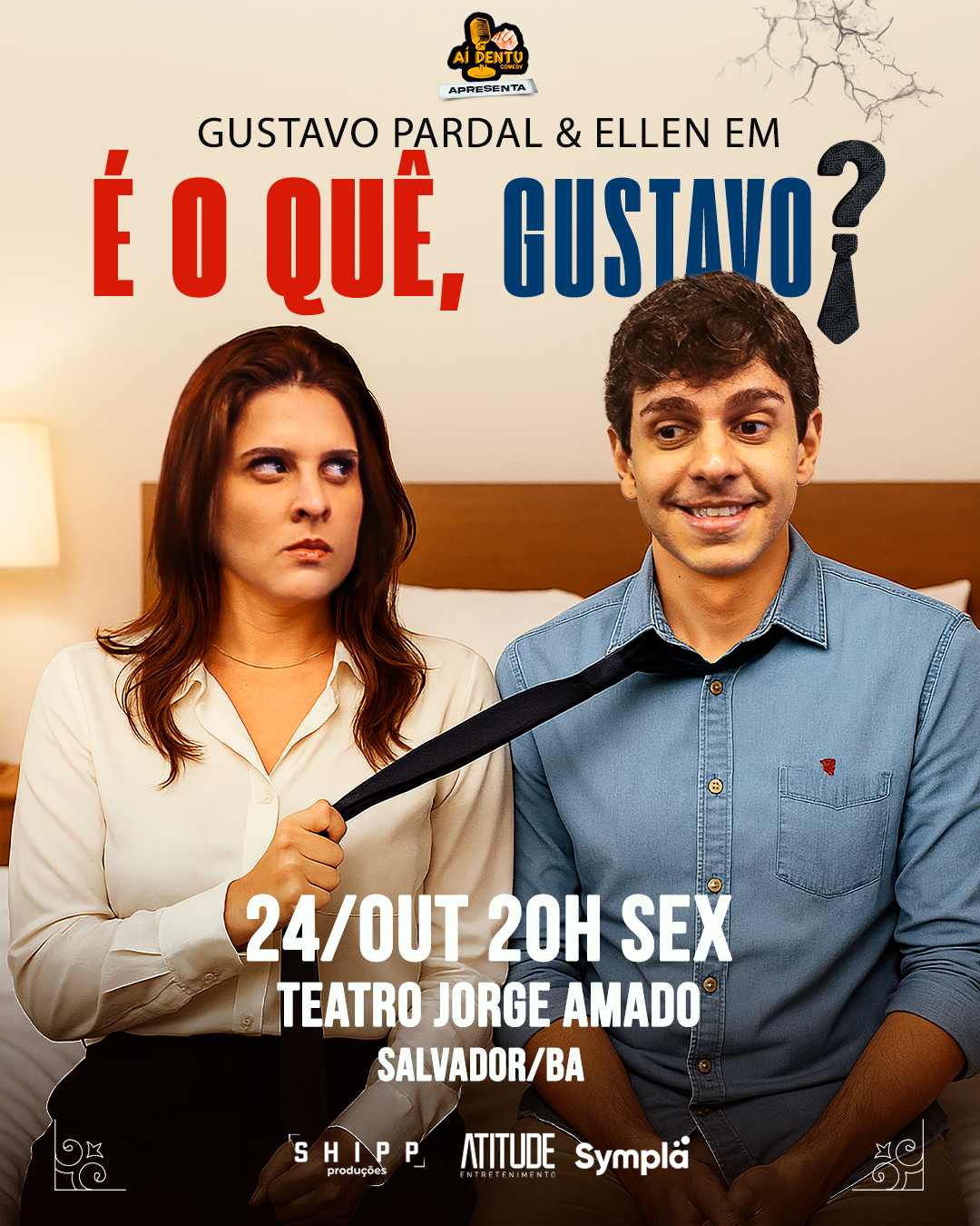 Com milhões de visualizações nas redes sociais, Ellen e Pardal — casal sensação do humor digital — chegam a Salvador no dia 24 de outubro para apresentar o espetáculo É o quê, Gustavo? no Teatro Jorge Amado. A dupla, que conquistou o público com esquetes sobre a vida a dois, promete uma noite de muita identificação, risadas e interação com a plateia.