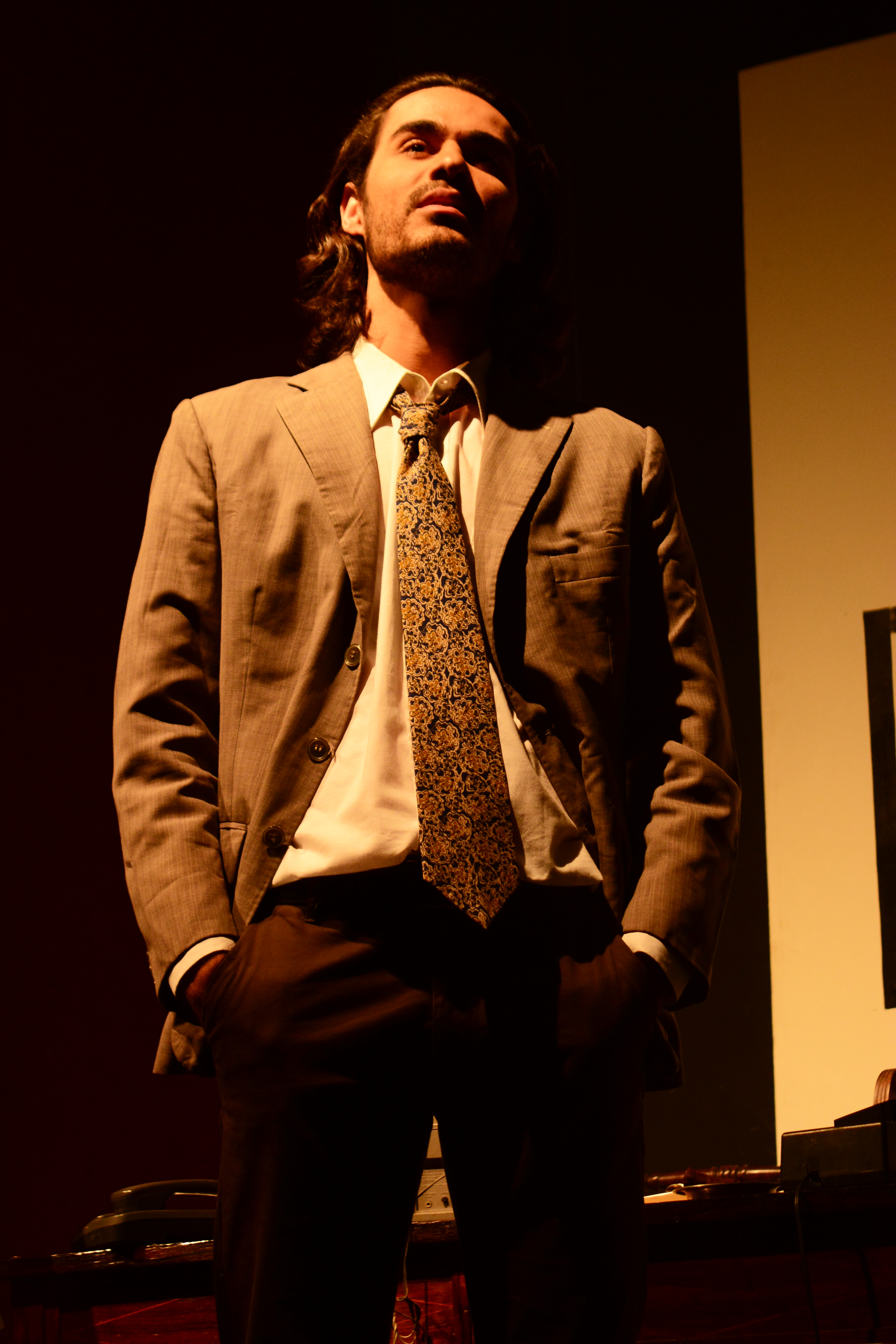 Klaus Hastenreiter é quem interpreta o protagonista V. Para a montagem, Davi estudou o personagem criado nos  anos 80. Com mais de 20 anos, os argumentos apresentados nos quadrinhos chamam atenção por serem atemporais. “Apesar de ser um símbolo dos anos 80, hoje em dia está muito forte. Eu tive que entender muito do texto, do que ele passou, sobre a colega de cela dele para além da questão política”, explica.