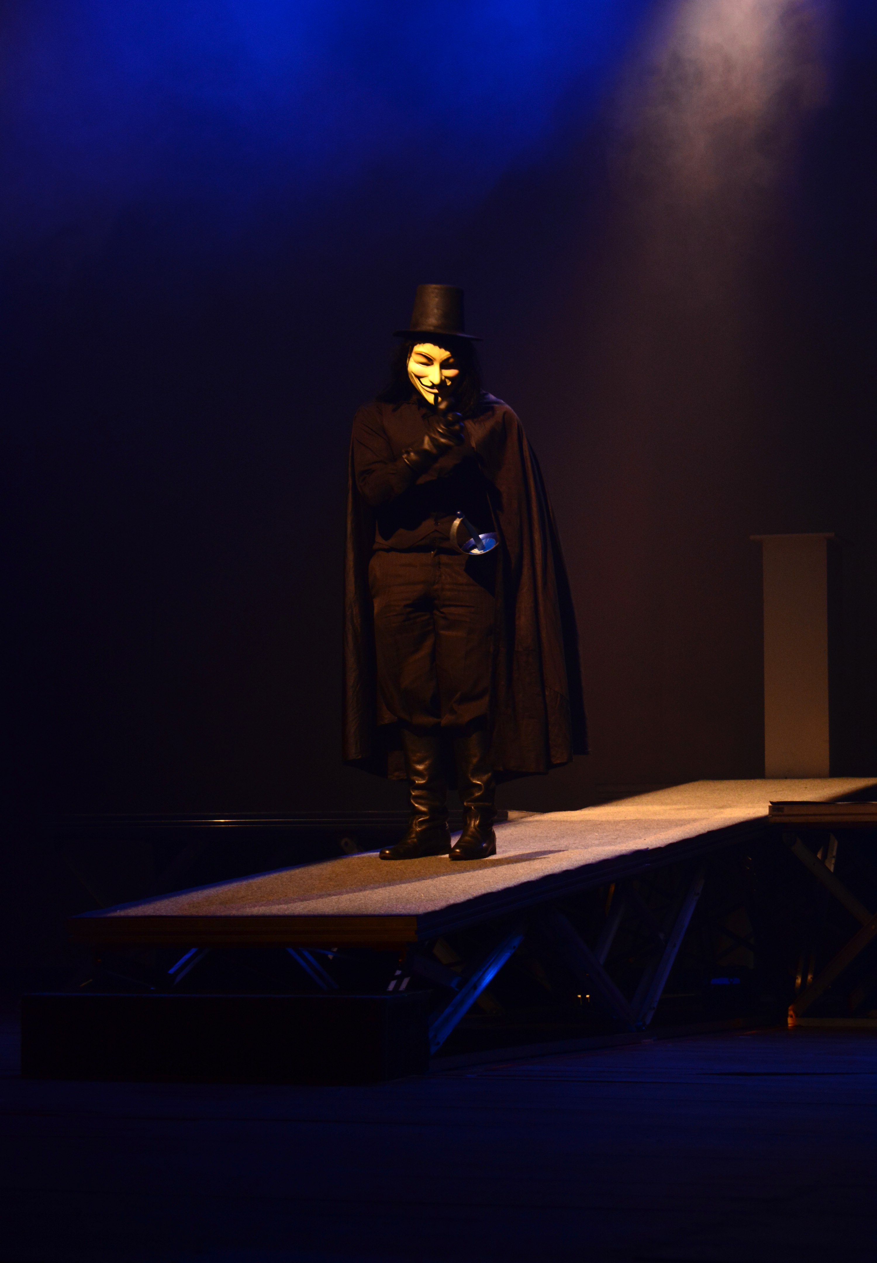 Nos protestos pelo país durante o ano de 2013, V era protagonista nos registros. A máscara usada pelo personagem se tornou um dos acessórios mais vendidos nas lojas especializadas. Mas será que todos sabiam a história por trás dessa moda? Durante os últimos dias de julho, o público pôde assistir, no Teatro Martim Gonçalves, o espetáculo V de Vingança, do formando da Escola de Teatro da Ufba, Davi Arteac.